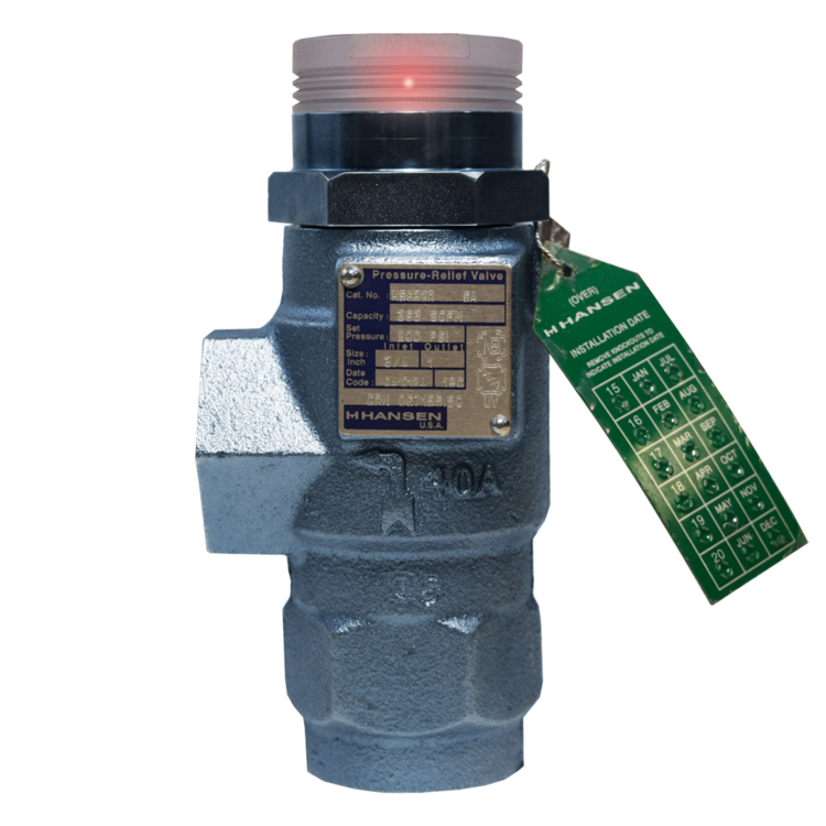 Hansen H5600 series pressure-relief valves come equipped with Hansen’s patented POP-EYE technology as standard. POP-EYE detects when a relief valve lifts and indicates at the valve via flashing red LED.