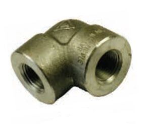 This product is a threaded 90 degree elbow fitting for high pressure pipe applications. The fixing has a 3000lb nominal pressure rating and comes with NPT connection style (American National Standard Taper Pipe Threads) with a black metal finish.