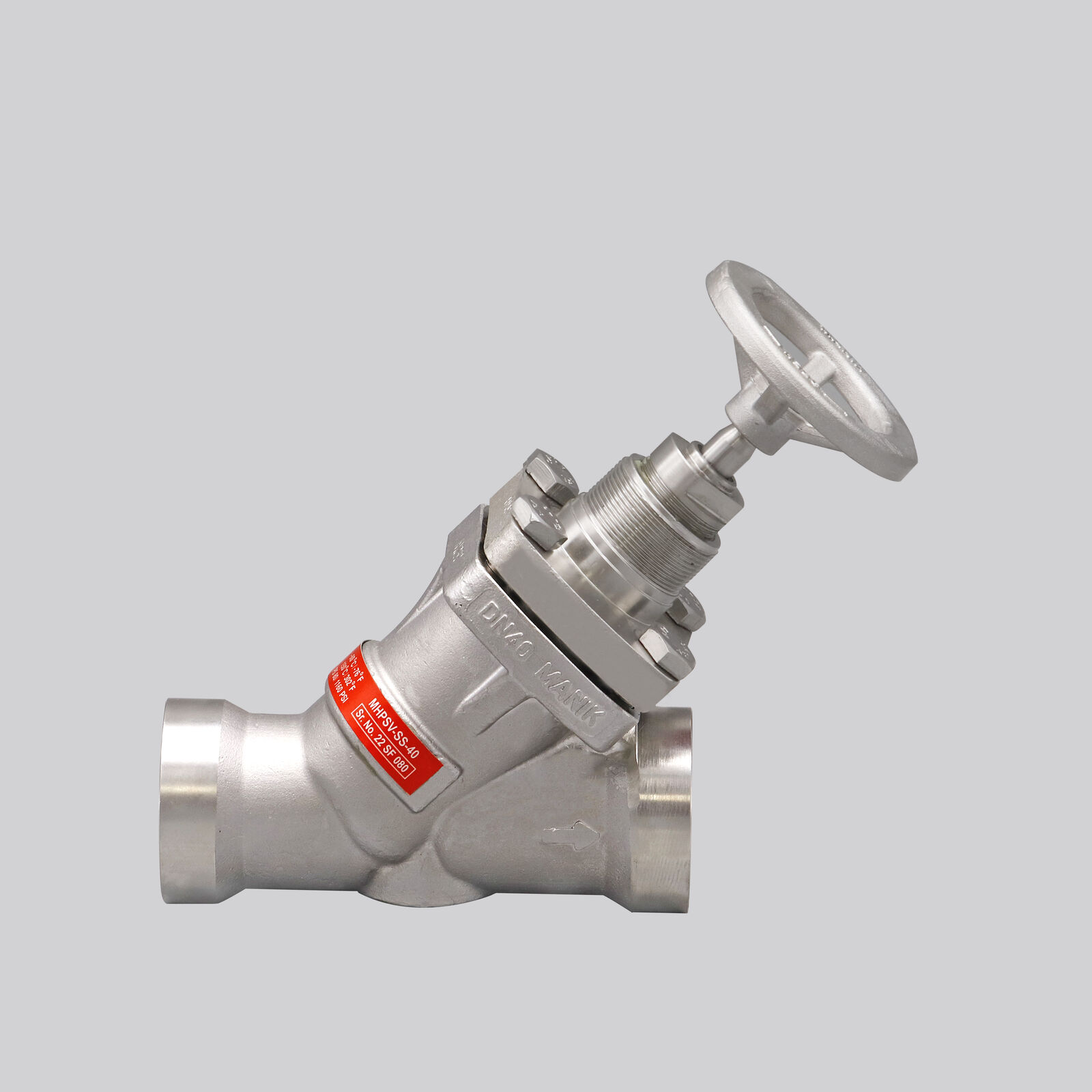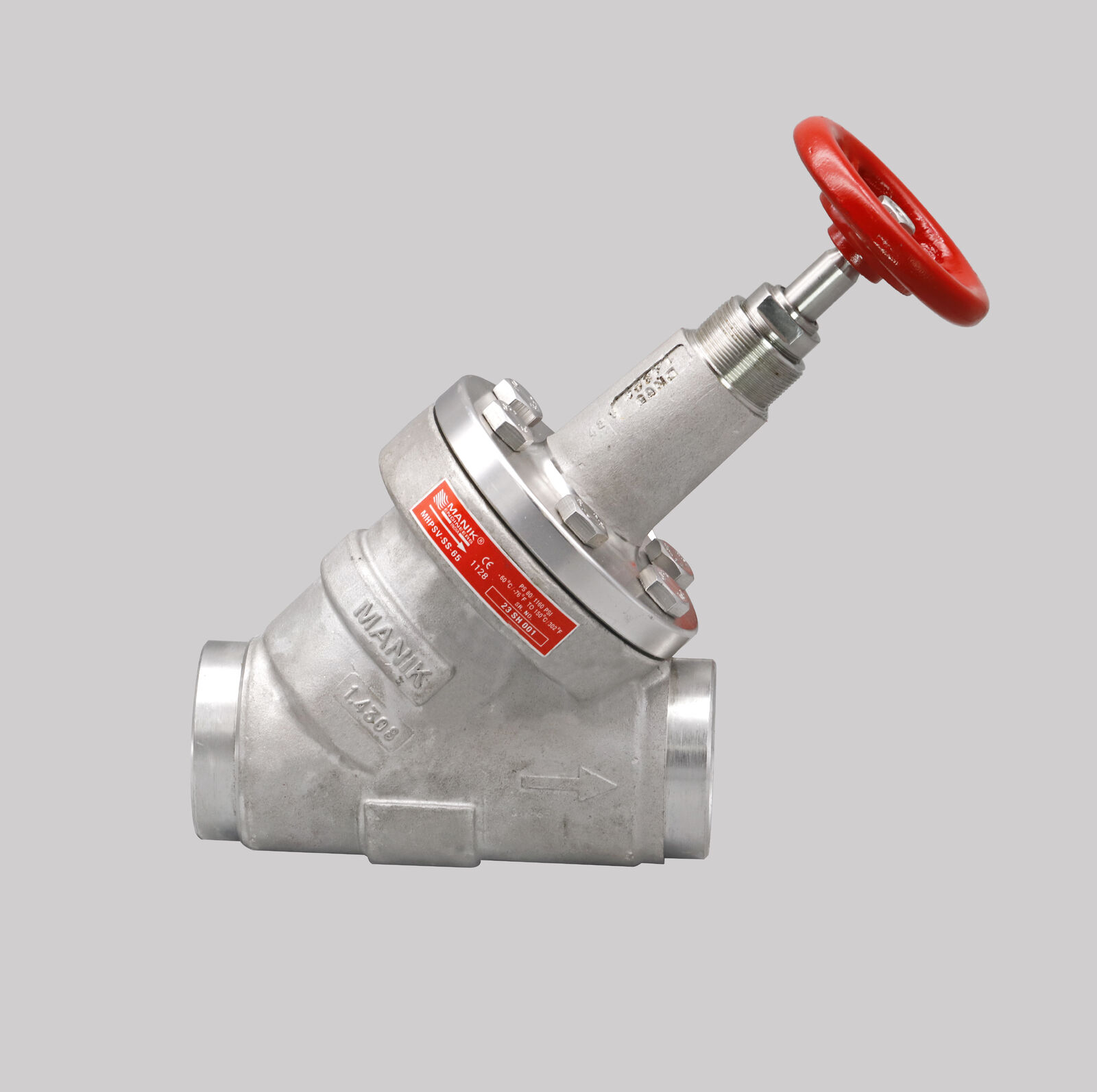 Manik High Pressure Globe/Straight Stop Valve with handwheel and socket weld. This is a shut-off valve designed with a socket weld connection to be directly fused to the steel piping, helping to eliminate any potential leaks or issues with threaded joints. Made from stainless steel. Imported from India.