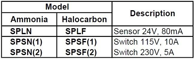 A small, bright LED inside sensor housing illuminates to indicate the presence of liquid. With liquid at the probe, the output signal will be 15% of the voltage supply (LED on). In the absence of liquid at probe, the output signal will be 90% of the voltage supply (LED off). This is a Single point Level Control sensor for use in ammonia refrigeration systems only, with a capacity of 24V and with a standard connection of 1/2" MPT.